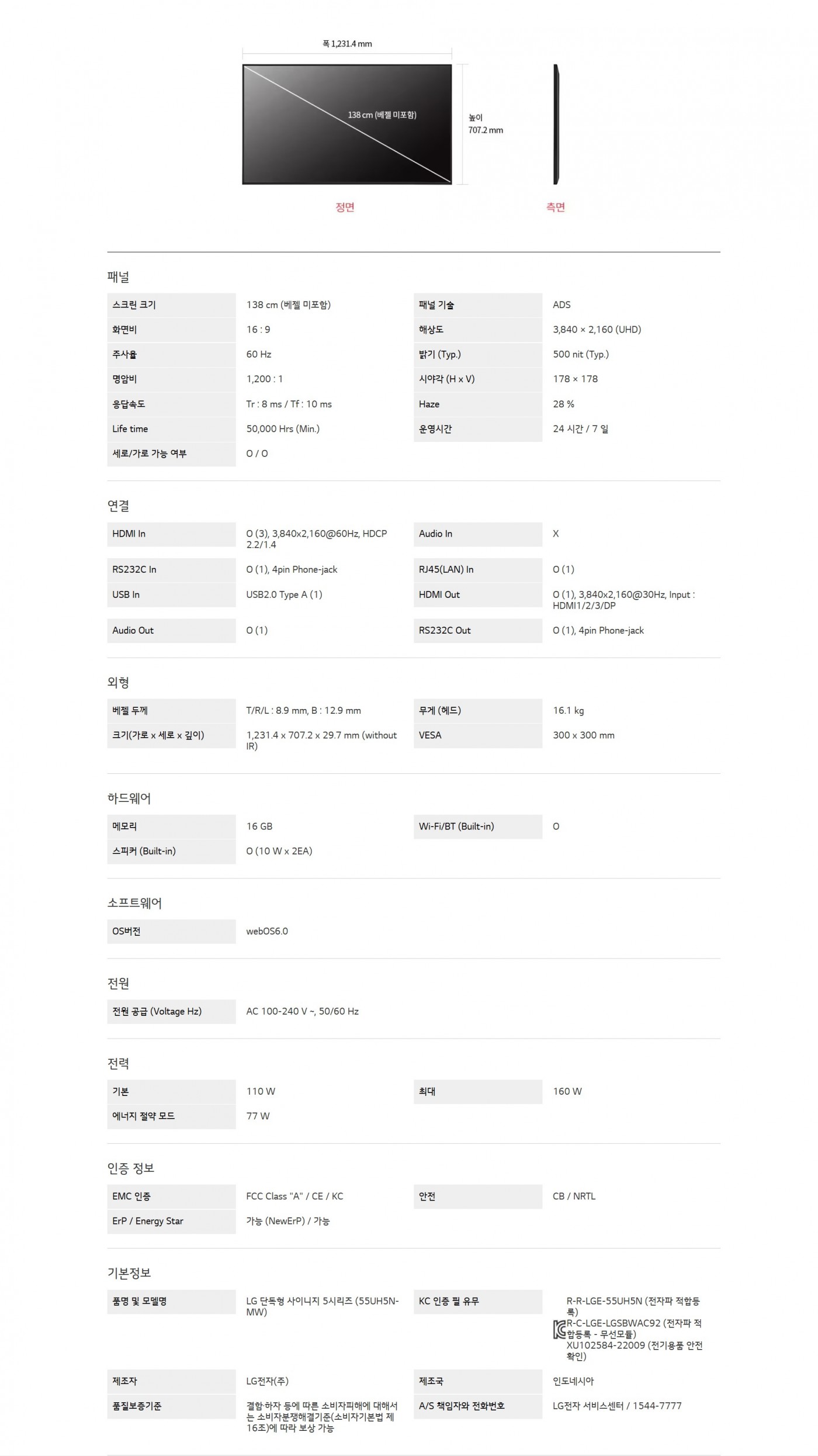 LG 단독형 사이니지 5시리즈 + 벽걸이 브라켓